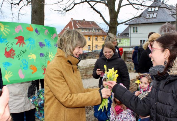 “Das ist ein großer Tag für uns”, freute sich auch Susann Kreusel vom Elternrat. Gemeinsam mit Almut Bothe vom Heimatverein hatte sie im Sommer 2018 die Eltern mobilisiert (https://www.wochenendspiegel.de/aufstand-der-wichtel-eltern-kaempfen-nach-abgesagter-sanierung-um-kita-in-reichenhain/).