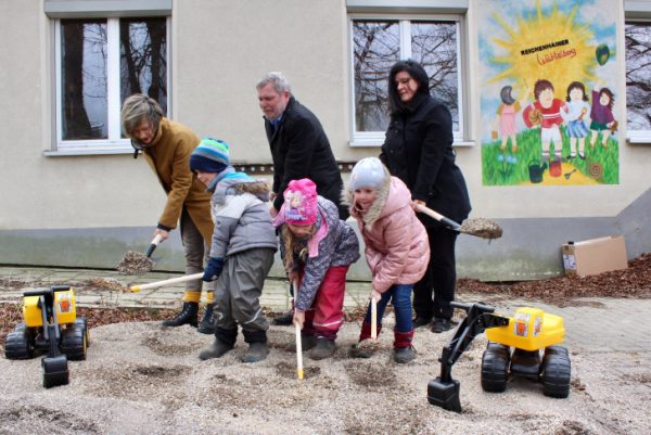 Erster Spatenstich für die Reko des neuen Kindergartens